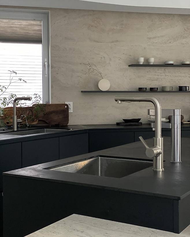 쉽게 쓸 수 없는 블랙 싱크대를 설치했어요. 색상은 지금도 너무 만족하지만 얼룩이 남지 않는 신소재라 하여 시공했는데 얼룩 제조기가 되어버렸어요. 깔끔한 성격에 초반에는 엄청 닦았는데 지금은 그냥 내려놓고 물기만 제거하고 있어요.