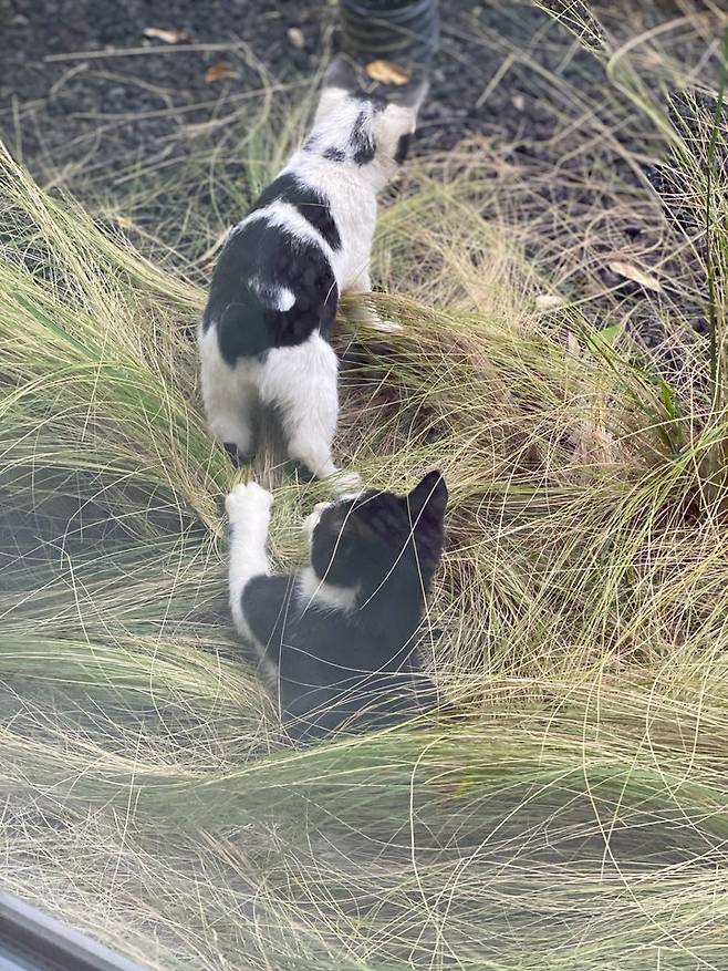 동네 길고양이들의 집도 놀이터도 되어주는 마당의 나무들이에요. 새들도 많이 와서 기르고 있는 블루베리나 잔디의 벌레도 잡아먹습니다. 동물 친구들이 놀러 오면 마음이 몽글몽글해져요.
