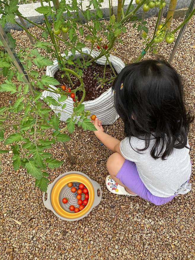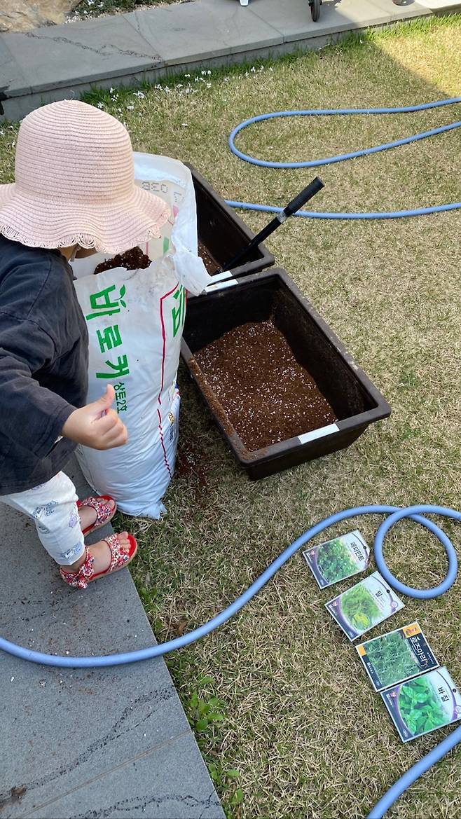 봄이 되면 아이와 무엇을 심어 기를까 대화를 합니다. 아직 6살이라 아는 채소가 몇 가지 없긴 하지만 작은 텃밭 가꿀 준비를 합니다. 마당에서 가장 많은 시간을 보내는 시기이지요.