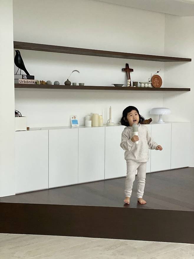 우리 가족은 이 공간에서 딸아이 숙제나 독서도 하고 영화도 함께 봅니다. 반려견 솔이가 공 가지고 신나게 뛰어노는 공간이기도 하지요. 제법 넓은 편이라 우리 딸도 강아지도 뛰어다니며 놀아요. 뛰지 말라는 말을 하지 않아서 참 좋습니다.