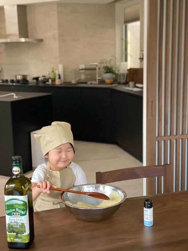 아이와 가끔 요리를 해요. 딸아이는 요리를 무척이나 재미있어 합니다.