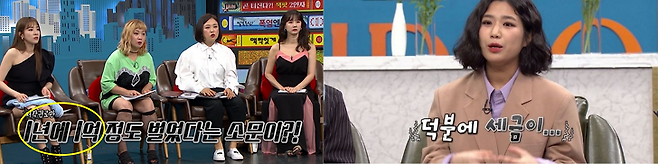 안예은은 최근 한 예능에 출연해 저작권료가 대기업 부장 연봉 수준이라는 점을 인정하면서 "'홍연'이 실린 앨범이 아주 효자다"라고 전했습니다. 이어 1년에 1억 정도가 맞느냐는 질문에 "덕분에 세금이..."라는 말로 높은 저작권료를 인증했지요.