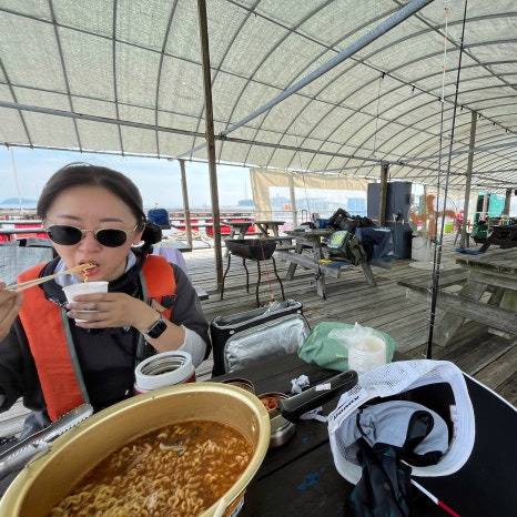 좌대에서 즐기는 쭈꾸미 갑오징어 라면