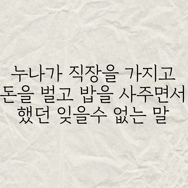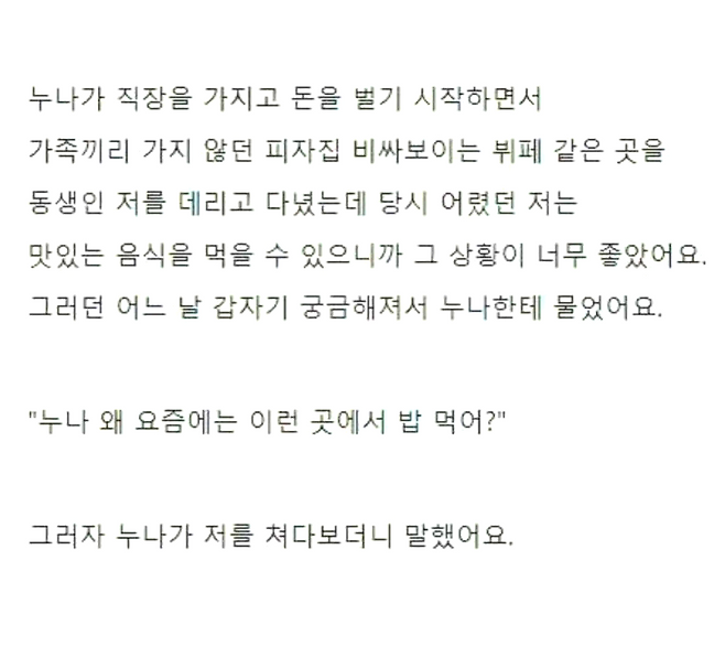 누나가 돈을 벌어 밥을 사주면서 했던 잊을 수 없는 말