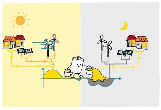 그러나 재생에너지는 생산량이 일정하지 않다는 한계를 갖고 있다. 태양광은 해가 뜨는 낮 시간대에만 전기를 생산할 수 있고, 풍력 역시 바람의 세기와 방향에 따라 발전량이 달라진다. 이런 간헐성 문제는 안정적인 전력 공급을 어렵게 만들며, 전력망의 신뢰도와 주파수 안정성에 위협이 된다. 이 문제를 해결할 수 있는 핵심 기술이 바로 배터리다. 배터리는 낮 동안 생산된 전기를 저장했다가 밤에 공급할 수 있게 해주고, 전기차 주행 중 안정적인 전력을 제공하며, 전력망이 불안정한 순간에는 전력을 보충해주는 역할을 한다 (그림 1).