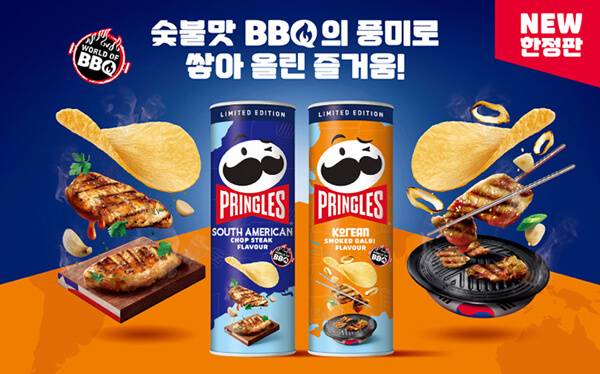 프링글스는 숯불맛 BBQ의 풍미로 쌓은 즐거움을 담은 ‘한국식 숯불갈비맛’과 ‘남미식 찹스테이크맛’의 2종의 신제품을 한정 출시했다. 이번 신제품은 ‘월드 오브 비비큐’ 시리즈로, 세계 각국의 BBQ 정통 요리 중 선호도 높은 두 가지 맛을 담아냈다. 한국식 숯불갈비맛은 한국뿐 아니라 일본, 호주, 대만, 홍콩에도 출시되는 제품으로, 일본에 선출시된 바 있다. 편의점 기준 판매가는 개당 4,000원이다.