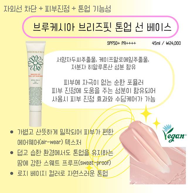 다음으로는 브루케시아의 브리즈핏 톤업 선 베이스야~