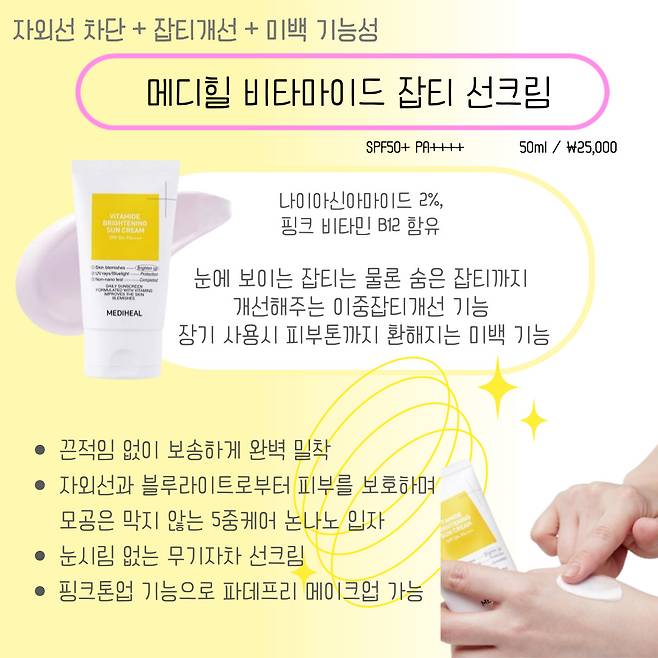 다음은 메디힐의 비타마이드 잡티 선크림이야!