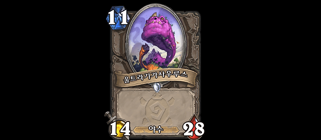 [울트라기가사우르스]는 11마나 바닐라 야수 하수인이며, 공격력이 14, 생명력이 28이라는 엄청난 수치를 가진 것이 특징이다.
