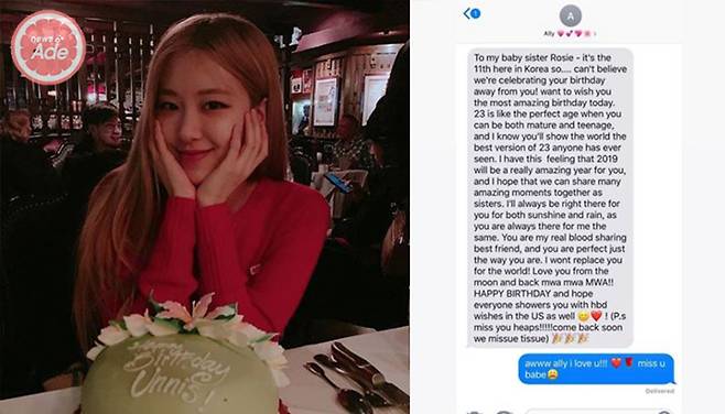바로 로제의 언니가 보낸 생일 축하 메시지였죠. 로제에게 자신이 응원하고 있다는 것과 올 한 해가 굉장한 해가 될 것이라며 보기만 해도 절로 미소가 지어지는 내용입니다.