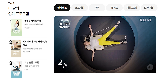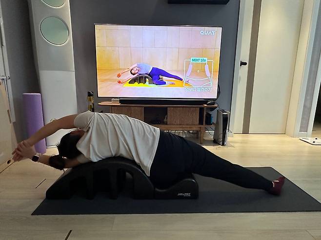 이번 취재 전후로도 쿼트의 다양한 필라테스 프로그램을 접했다. 결과부터 말하자면 만족이다. 땀을 뻘뻘 흘리는 유산소 운동보다 칼로리 소모는 적지만 평소에 잘 쓰지 않는 부위를 자극할 수 있어서 효용감이 크다. 취재한 날에는 단단해진 앞 허벅지를 만지고 흐뭇한 미소를 지었다.