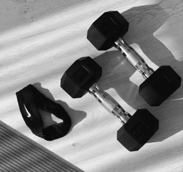 김준희가 공개한 덤벨은 한 손에 쥘 수 있는 작은 운동 기구로, 근력 운동에 주로 사용된다.