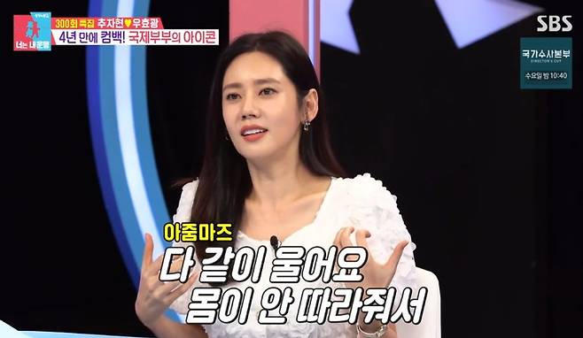 특히나 중국 오디션 ‘승풍 2030’을 통해 걸그룹에 도전한 추자현은 “3050 여성 도전자들을 모아놓고 공연을 준비하는 과정을 찍는 프로그램인데 다 같이 운다. 내일 모레 공연을 해야 하는데 동작은 외워지지 않고 몸도 안 따라준다”며 웃었다. “가수 출신은 무대를 하고 우린 예능을 한다. 나는 인기 담당”이라는 것이 추자현의 설명.