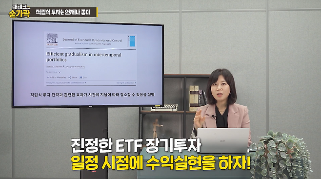 한꺼번에 매수하는 것이 아니라 여러번에 걸쳐 점진적으로 위험 자산을 매수해 변동성을 줄이는 방법이기도 하다. 김 대표는 “이는 다른 말로 하면, 적립식 투자 기간이 길어질수록 이후 매수한 주식 수량과 금액이 내 총 자산에서 차지하는 비중이 낮아진다는 뜻”이라고 했다. 전체 투자금액이 뭉칫돈이 되고 나선, 다달이 조금씩 매수해 평균 매입단가를 떨어뜨리는 방식에 한계가 있기 때문이다. 김 대표는 “시간이 지나 어느정도 수익을 봤다면 수익실현을 한 다음 또다시 분할매수를 시작하는 것이 좋다”고 했다.