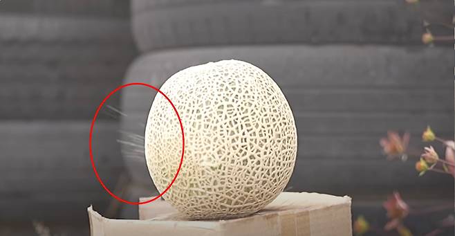 메론과 단호박 같은 딱딱한 껍질을 가진 식물은 겉면에 상처가 났지 새총이 과육 안으로 뚫고 지나지는 못했습니다.
