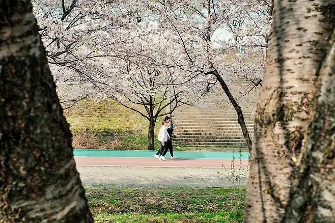 잔디밭과 황토길을 지나면 벚꽃 너머로 한강이 보이기도 하며, 여유롭게 걷는 시민들의 모습에서 도심 속 힐링 공간의 면모가 느껴진다.