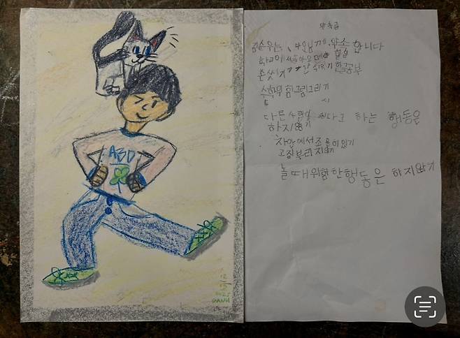 우리는 아이들과 마음을 모으기 위한 대책을 세웠다. 아이들과 함께 작은 약속을 만들었다. 가족끼리 만든 작은 규칙이랄까. 한글이 다 안되는 둘째 아이가 연필로 삐뚤빼뚤 종이에 써 놓은 약속을 읽으면서 웃음이 나왔다. ‘학교에서 돌아오면 할 일’ 이라고 시작되는데 그 중에 집에 들어오면 손 씻기, 차 안에서 조용히 있기, 고집 부리지 않기 같은 내용이 있는데 분명히 다 지켜내지 못할 것이다. 그럼에도 그 순간의 마음이 중요하다. 작은 약속, 작은 습관들이 모여 하루를 만들어 낸다. 그 하루들이 모여 그 사람을 만들어 내는 것이다.