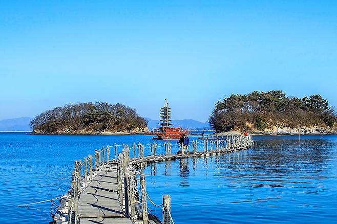 부교 위를 걸으며 파도 소리를 듣고, 바다를 바라보며 사찰의 계단을 오르다 보면 마음이 조금씩 비워지는 것을 느낄 수 있다.