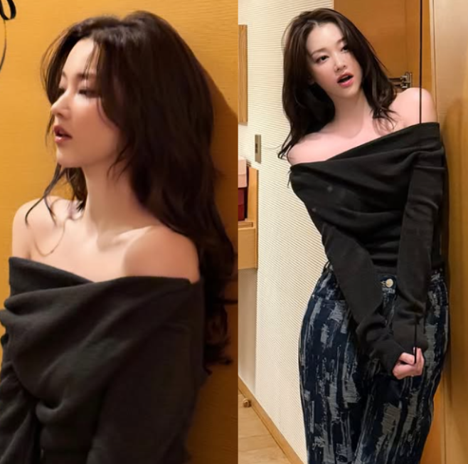 전종서 님이 선택한 블랙 톱은 심플하지만 힘 있는 디자인이 인상적이었어요. 어깨 라인을 드러내는 오프숄더 스타일은 상체의 실루엣을 부드럽게 강조하면서도, 전체적으로 시크하고 모던한 느낌을 줬죠.