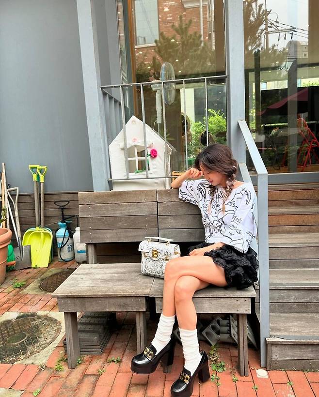 특히 산다라박은 블랙 로퍼와 함께 매치된 화이트 양말로 최근 트렌드인 Y2K 스타일을 연상케 하는 레트로한 감성을 주며 양 갈래로 땋은 헤어스타일로 발랄하고 소녀스러운 이미지를 돋보였습니다.