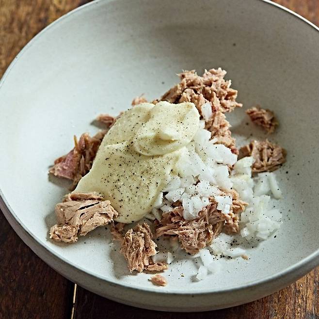 양념 재료 : 마요네즈 2큰술, 다진 양파 1큰술, 설탕 1작은술, 소금, 후춧가루 약간씩