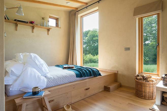 자연 속 별장이라고 해서 불편함을 감수해야 한다고 생각했다면, 이 집은 그 편견을 단번에 깨버린다. 넓은 오크 캐비닛, 슬라이딩 도어로 나뉜 야외 데크, 그리고 서랍형 침대 프레임까지, 필요한 모든 것이 심플하게 정리돼 있다.