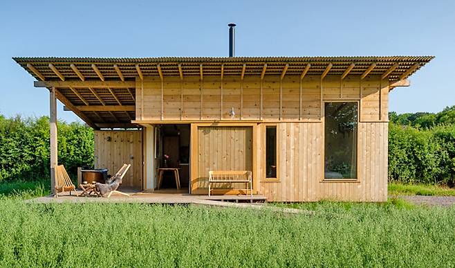 구불구불한 시골길을 따라 걷다 보면, 어느 순간 눈앞에 펼쳐지는 광활한 옥수수밭 사이로 조용히 모습을 드러내는 집이 있다. 이곳은 휴가용 목조 주택이다.