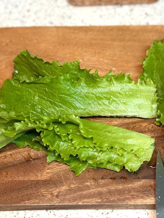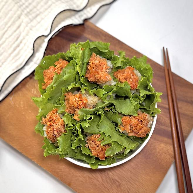 애매하게 남은 상추, 집에 있는 참치캔 하나만 더하면, 입맛 돋구어주는 메뉴로 완성됩니다.