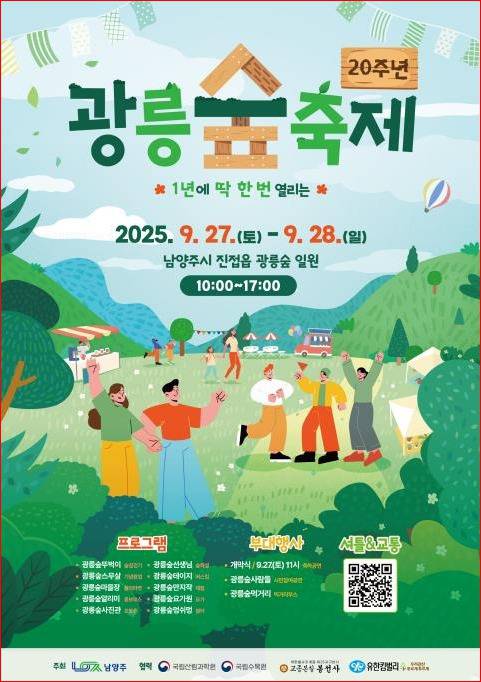 올해로 20주년을 맞는 이번 축제는 2025년 9월 27일(토)부터 28일(일)까지 진행되며, ‘광릉숲 스무 살’을 주제로 다양한 체험과 공연이 마련됩니다.