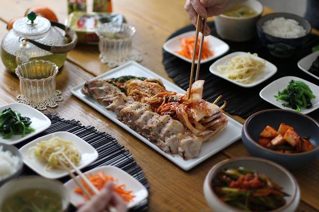 간단히 구워 쌈에 싸 먹는 방식이지만, 다양한 소스와 반찬으로 무궁무진한 맛의 조합이 가능해요.