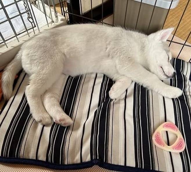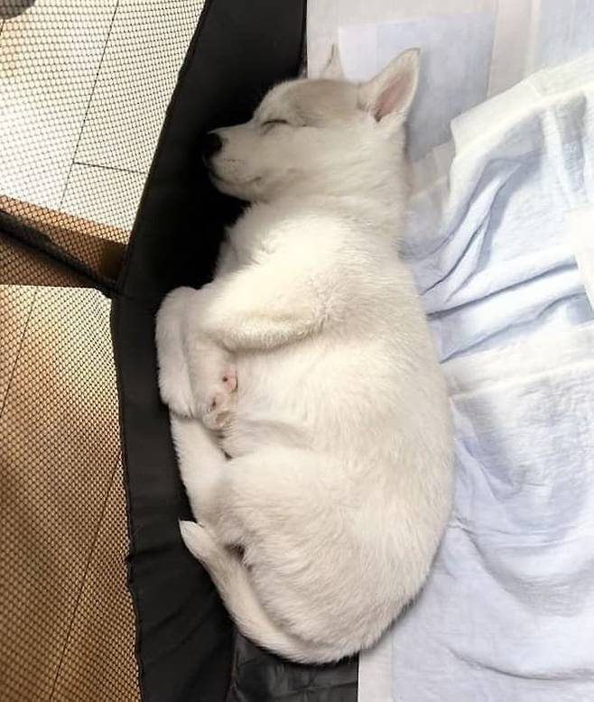 공개된 사진 속에는 두 눈을 지그시 감은 채로 세상 모르게 잠든 귀요미 모습이 담겨 있었는데요. 이 귀요미의 정체는 다름 아니라 강아지였습니다.