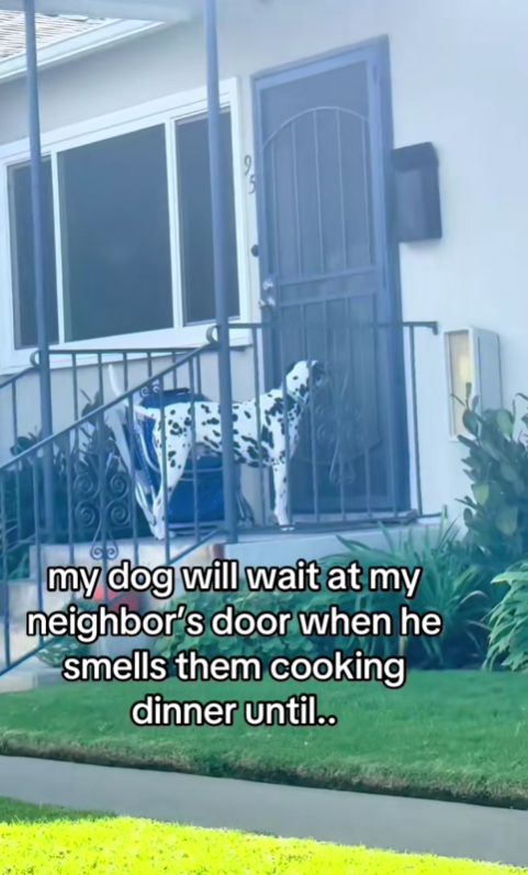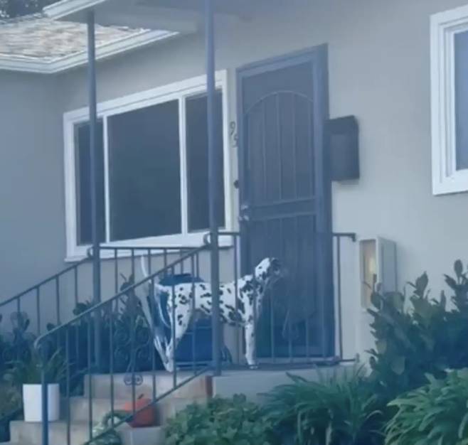 The Dodo에 따르면 샌디에이고에 사는 8살짜리 달마시안 ‘터커(Tucker)’는 매일 저녁이면 어김없이 이웃집 문 앞에 선다.