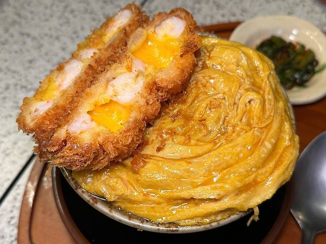 대표 메뉴는 ‘에비가츠동’과 ‘대창소고기카레누들’이다. 에비가츠동은 부드러운 달걀과 두툼한 돈가츠, 바삭한 새우가츠가 함께 올라가 있다. 간장 양념이 밥에 스며들어 짭조름하고 달큰하며, 달걀의 부드러움이 튀김의 고소함을 감싸 준다. 돈가츠는 육즙이 살아 있고 새우는 바삭하게 튀겨져 식감이 좋다.