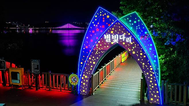 약 140만㎡의 넓은 공간에 펼쳐진 이 공원은 밤이 되면 완전히 다른 풍경으로 변신한다. 조용히 흐르는 물결 위로 물빛다리와 별빛다리에 설치된 조명들이 은은하게 반사되며, 고요한 밤의 분위기를 더욱 몽환적으로 만들어 준다.