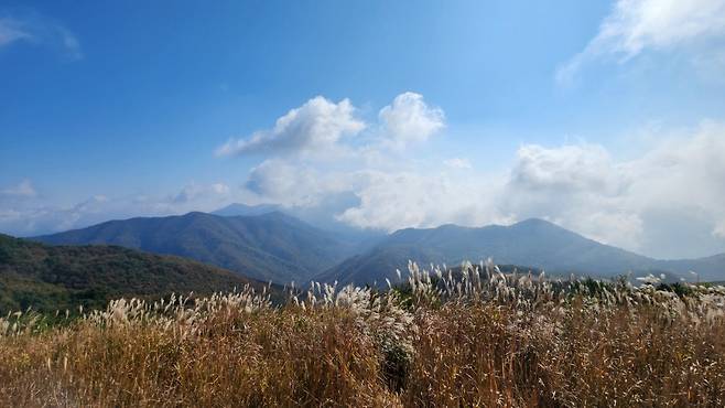 처음 시작은 배너미 고개입니다. 근처에 가시면 갓길에 차가 즐비합니다. ATV도 올라가는 임도로 시작합니다. 단풍과 잣나무, 그리고 야생화가 반기는 쉬운 임도로 오릅니다. 사실 거의 산책 수준이에요. 억새군락지에서는 시원한 조망과 억새의 멋진 모습을 눈에 담을 수 있습니다.
