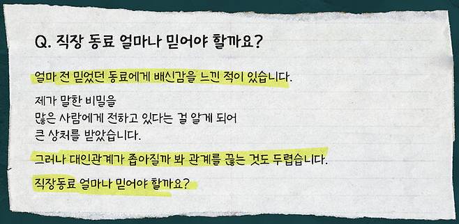 우리는 생각보다 직장에서 내 편이라고 생각하는 사람들에게 마음을 모두 여는 경우가 많습니다.