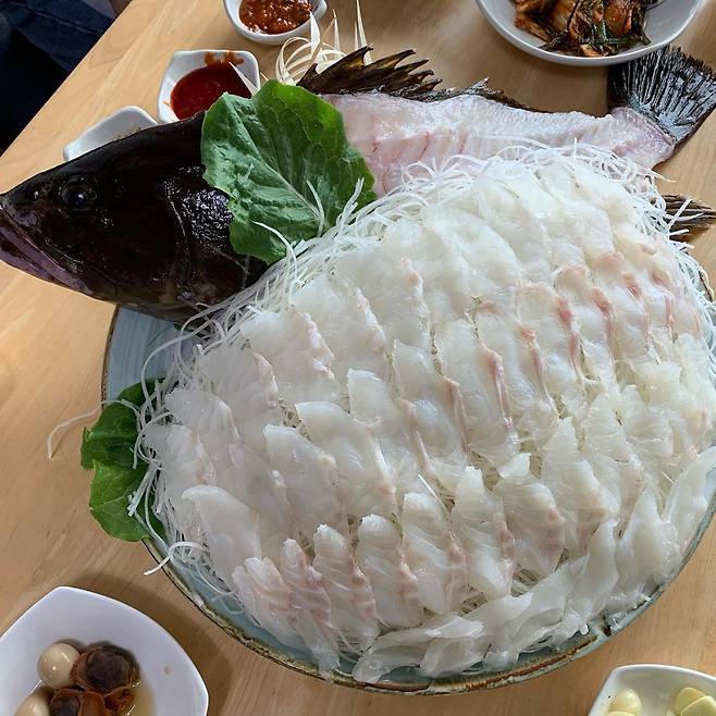 속이 뻥 뚫리게 만드는 용머리 해안과 산방산 뷰를 눈에 담은 채로, 압도적인 맛의 자연산 고급어종을 맛볼 수 있는 서귀포시 안덕면의 횟집. 제주산이 아니면 판매를 하지 않으며 참돔을 제외하고는 다금바리와 붉바리, 구문쟁이 등의 양식이 불가능한 어종만 취급하기 때문에 사실상 제주산이자 자연산 횟감만 취급하는 곳. 수급 자체가 쉽지 않은 바리류 생선을 초대형 사이즈 위주로 들여오는 몇 없는 업장이기 때문에, 같은 어종이어도 일반 횟집이나 스시야와는 차원이 다른 경험을 할 수 있다는 특장점이 있다. 다금바리회는 kg 단위로 주문 가능하고 회는 물론 부속 부위까지 깔끔하게 손질되어 제공된다.