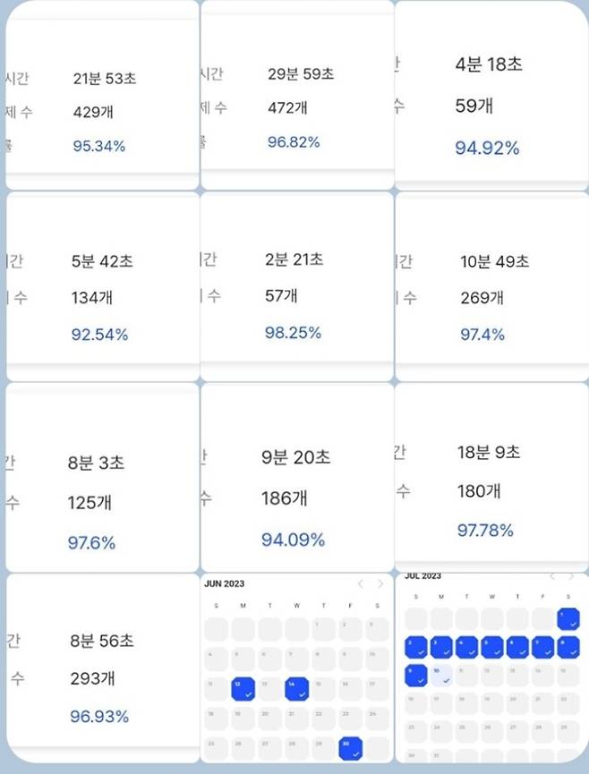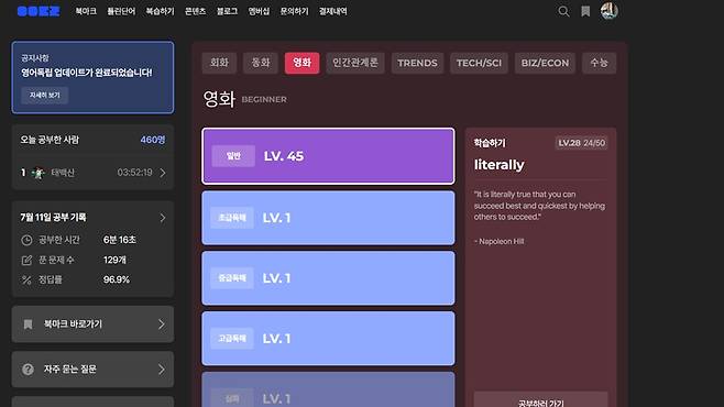 통계적 근거도 완벽하지만 공부 방식이 퀴즈라서 사실 정말 재미있습니다. 그래서 하루에 몇 시간씩 공부하는 분들도 많이 나옵니다. 그렇게 하기 싫던 영어 공부를 성인이 되어서 몇 시간씩 한다는 게 믿겨지십니까?