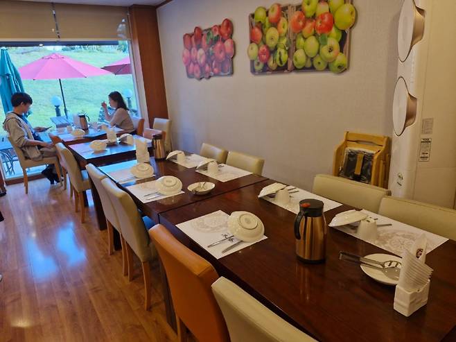 음식 나오는 속도도 거의 공장급이었다. 음식을 채 다 먹지도 않았는데 다음 접시를 들고 와서 빨리빨리 먹어줬으면 하고 보채는 느낌이다. 심지어 테이블 음식을 가져다주는 도우미 아주머니는 중간에 어떤 음식이 빠졌는지도 모른 채 이제 나올 게 다 나왔다는 실수를 하고 올 때마다 연거푸 사과를 했다.