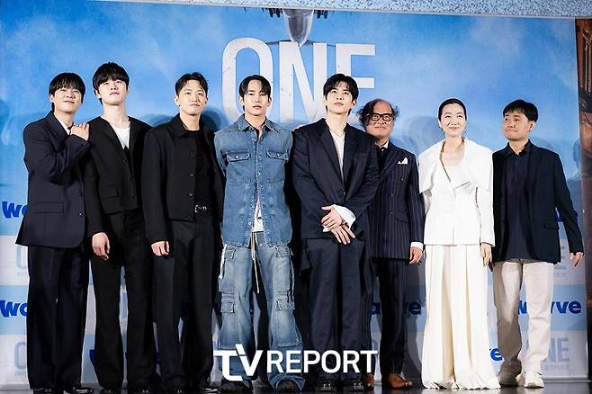 [TV리포트=오민아 기자] 배우 이정하와 김도완, 유희제, 육준서, 임성균, 김상호, 이주령, 감독 이성태가 28일 오전 서울 광진구 자양동 롯데시네마 건대입구점에서 열린 Wavve 'ONE : 하이스쿨 히어로즈' 제작발표회에 참석해 포즈를 취하고 있다.