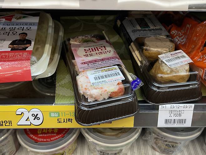 벚꽃 생각나는 분홍색 유부속에 게맛살나는 밥이 들어있어요. 봄시즌 한정판이라 구매를 추천해요!