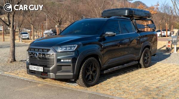 시승차는 지난해 상반기 나온 렉스턴 스포츠 칸의 페이스리프트 모델인 쿨맨 노블레스 풀옵션 사양으로 가격은 4500만원대다. 별도로 하드쉘 루프탑 텐트와 벙커롤바 등 캠핑을 위한 악세사리가 장착되어 있다. 갤럭티스 그레이 외장 색상과 검정색 페인트가 칠해진 18인치 휠과 오프로드를 위한 AT 타이어를 장착해두어 어디든지 떠날 수 있는 자신감을 불어 넣어 준다.