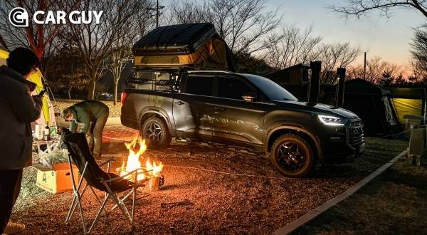 이날 시승을 마치고 영하 10도의 날씨에 렉스턴 스포츠 칸과 함께 캠핑 라이프를 즐겨봤다. 넉넉한 적재공간에 수많은 캠핑 장비를 싣고 루프탑텐트를 쉽게 펼쳐 아늑한 공간을 만들어냈다. 또한 AT타이어의 장착으로 오지캠핑등 완벽한 자연속에서의 캠핑도 쉽게 가능하다.