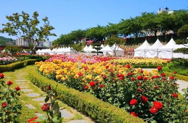 삼척 오십천 장미공원에서는 매년 5월 말부터 6월 초까지 장미축제가 열립니다.