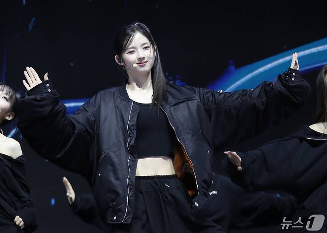 (서울=뉴스1) 권현진 기자 = 그룹 트리플에스(tripleS) 지우가 8일 오후 서울 광진구의 예스24라이브홀에서 가진 정규 앨범 'ASSEMBLE24(어셈블24)' 쇼케이스에서 타이틀곡 'Girls Never Die(걸스 네버 다이)'를 선보이고 있다. 2024.5.8/뉴스1
