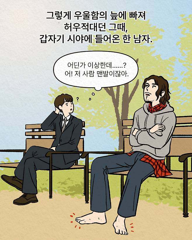 공원에서 만난 맨발의 남자 정체