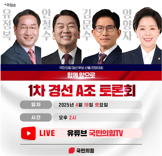 ☑️ A조: 김문수, 안철수, 양향자, 유정복