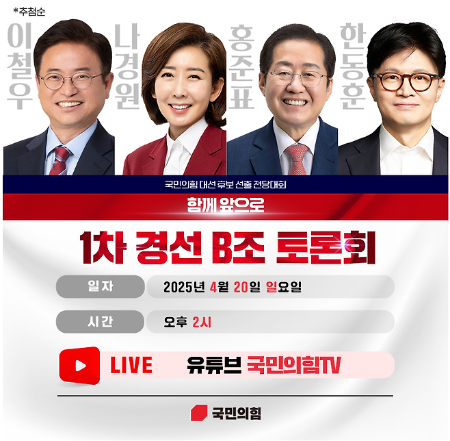 ☑️ B조: 나경원, 이철우, 한동훈, 홍준표