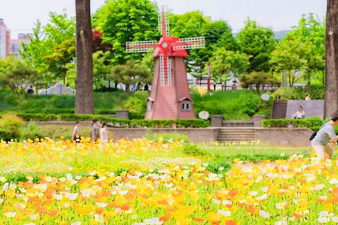 징검다리를 건너며 수변식물을 구경할 수 있고 휴게시설에서 도심 속 힐링을 취할 수 있습니다. 봄이 되면 알록달록한 꽃이 만개해 놀라운 풍경을 감상할 수 있으니, 꼭 방문하셔서 멋진 작품을 남겨보시길 바랍니다.