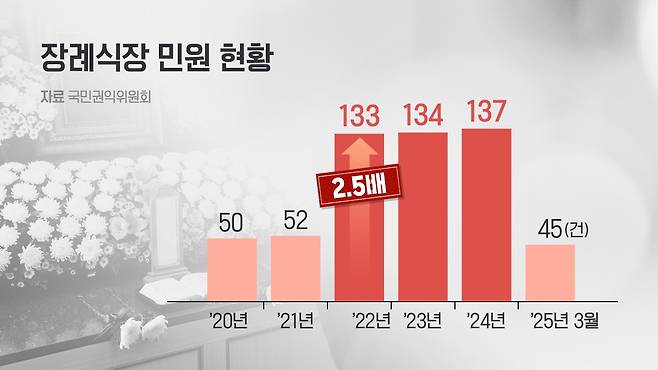 그럼에도 '바가지 관행' 민원은 줄지 않고 있습니다. 2022년 이후 매년 신고된 민원은 130 건 안팎이지만, 일부 장례식장의 불공정 행위는 이보다 훨씬 많을 것으로 보입니다.
